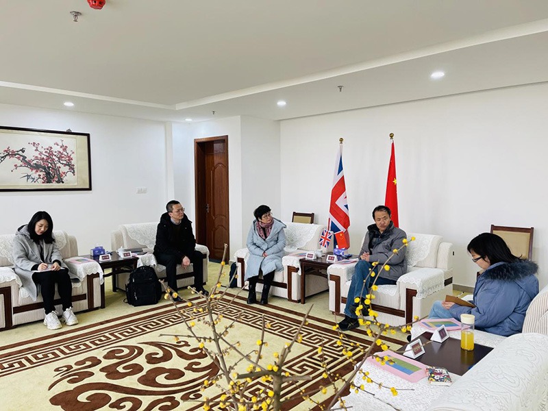 2021年1月19日下午,英国文化教育协会英语项目中国区总监钟伟华女士、项目专员黎瑞回访中心,并参观中心新址。中心李全主任及相关人员参加会谈。